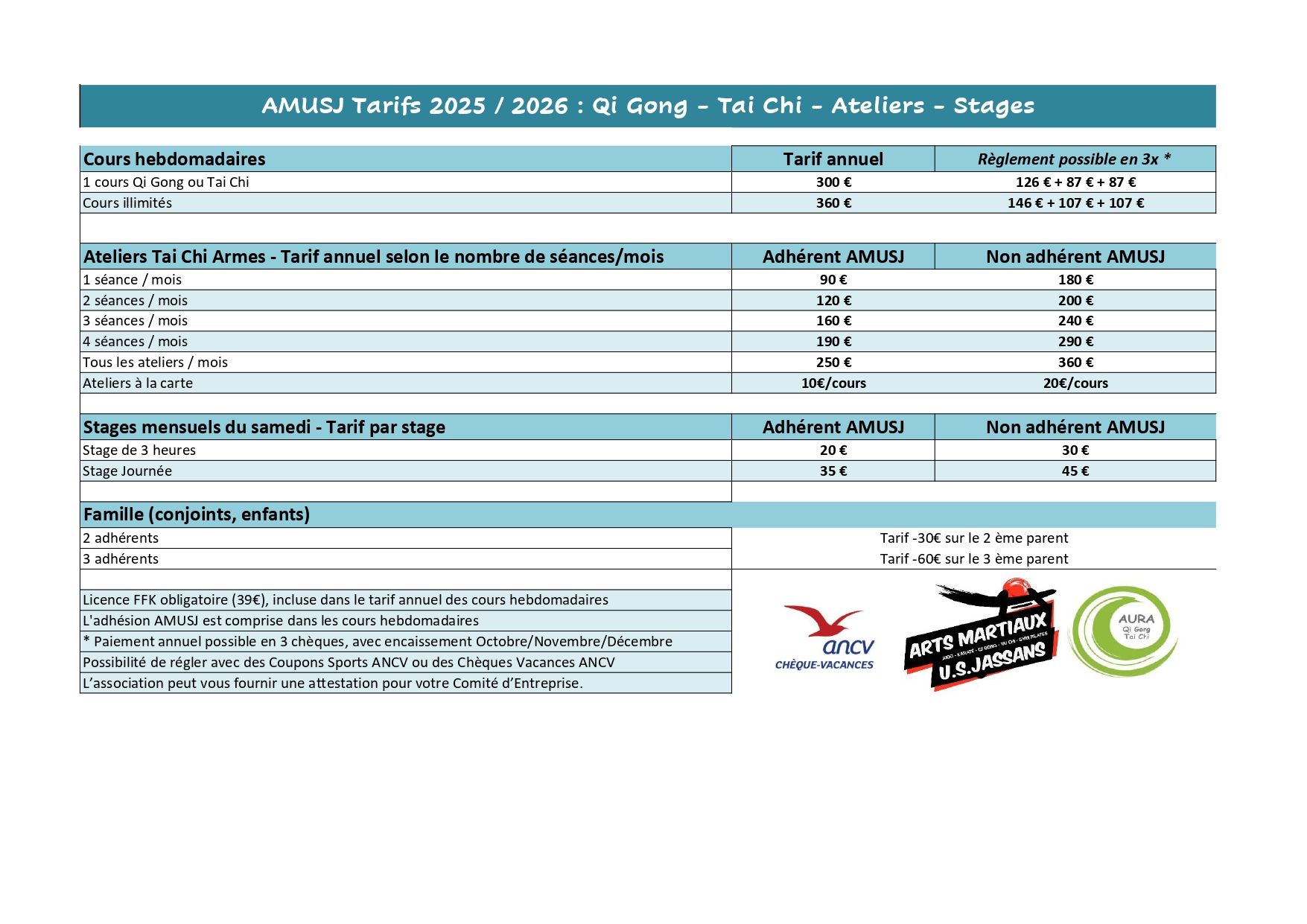 TARIFS 2025-2026 des associations AMUSJ à Jassans-Riottier et SAMANA à Savigneux.